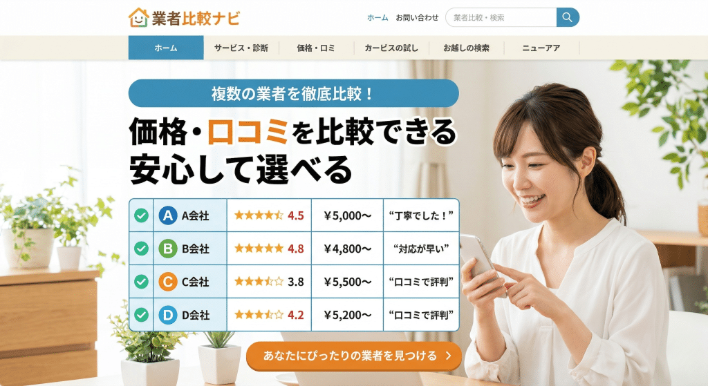 複数の業者から見積もりを取り、価格・口コミ・実績を比較してから依頼できるため、失敗リスクを大きく減らすことができます。