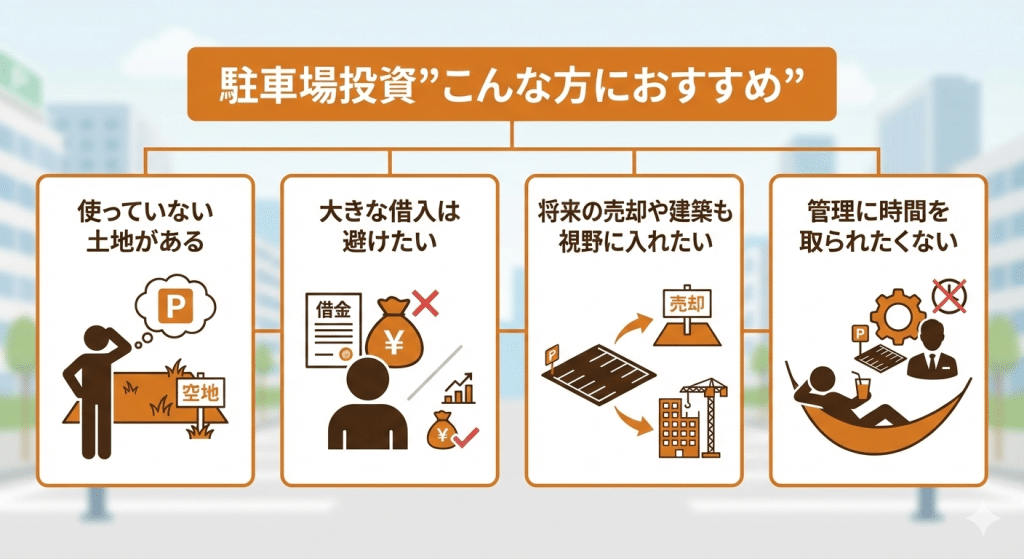 この記事は、相続・遊休地を持つ土地オーナーが、駐車場経営(コインパーキング/月極)で土地活用するための「判断軸」を整理した内容です。