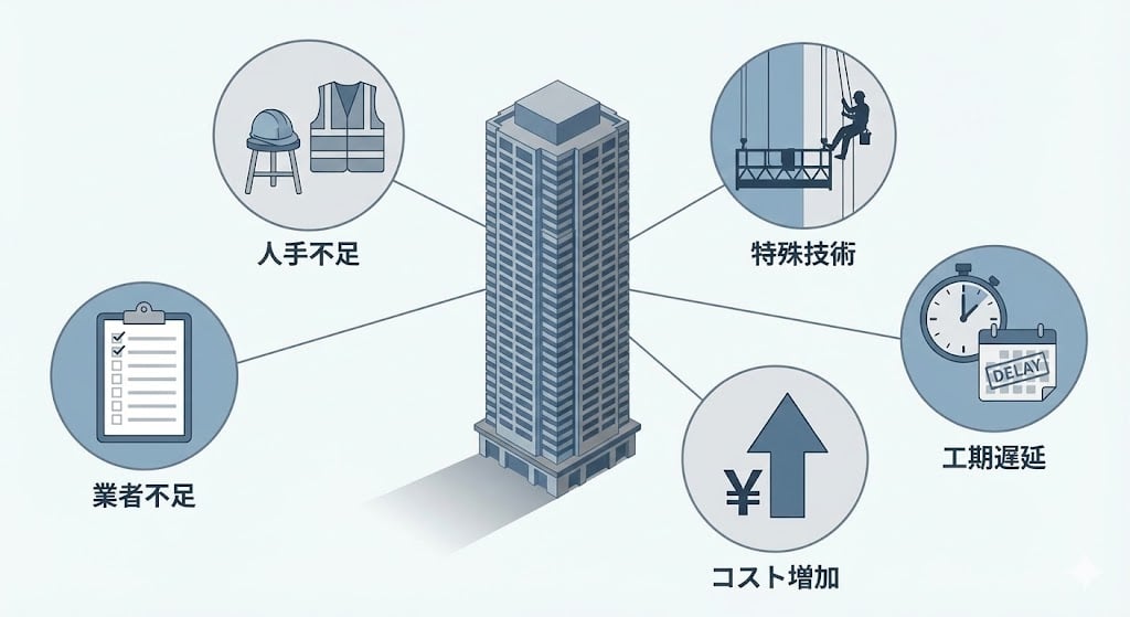 高層外壁・特殊設備によるコスト増大